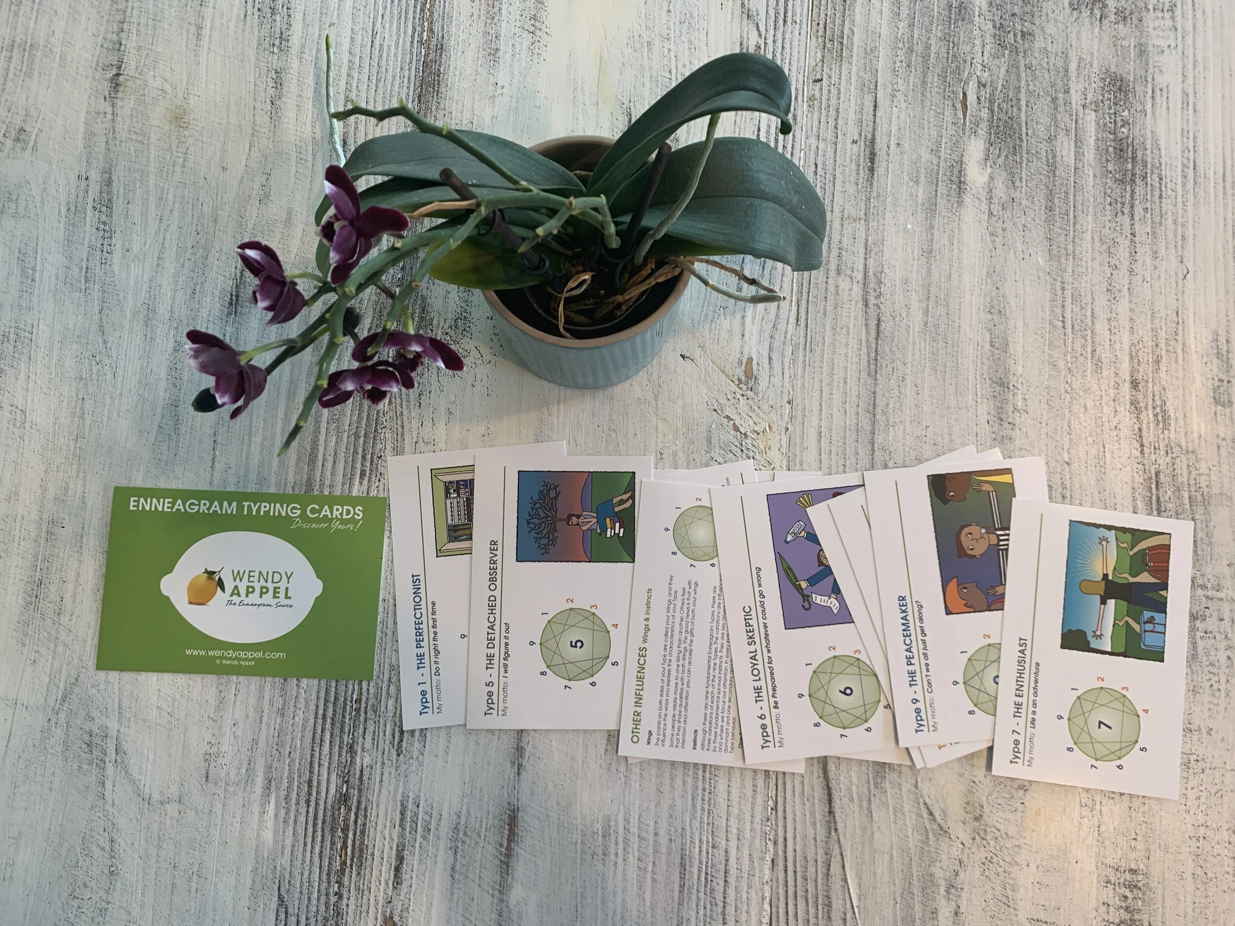 Wendy Appel has distilled the nine distinct worldviews of the Enneagram Types into a set of Typing Cards, capturing the essence of each Enneagram Type. They are an accessible, interactive and kinesthetic way to learn and apply the Enneagram system.